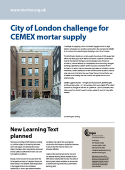 Mortar News is an occasional electronic newsletter promoting the use of factory-produced mortars and the skilled building trades associated with its use. Each edition has changing case study information relating to the MPA Mortar producer members involved.